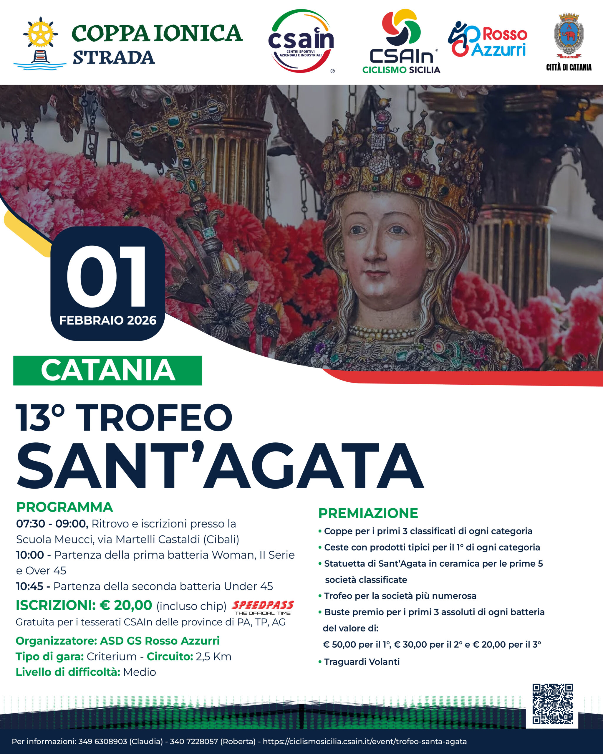 COMUNICATO: la partenza è stata posticipata alle ore 10:00 ma il programma rimane invariato con ritrovo dalle 7:30 alle 9:30. 13° Trofeo Sant'Agata 🗓️ Catania, 01 febbraio 2026 Programma 07:30 - 09:30, Ritrovo e iscrizioni presso la Scuola Meucci in via Martelli Castaldi (Cibali) 10:00 - Partenza della prima batteria - Categorie: Woman, Junior Sport, […]